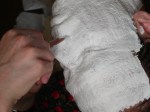 Because of the mix up, the materials I requested were not available so here are photos of plaster gauze being applied to a mummy! Enjoy. Please feel free to email/comment w/ questions.